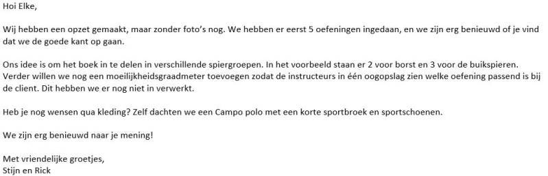 Eerste mail van Elke: